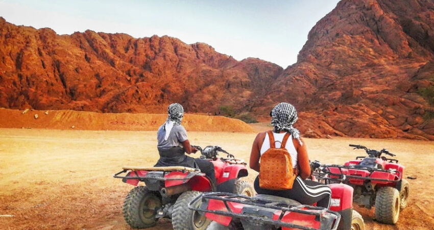 Macera ve adrenalin tutkunları için benzersiz bir deneyim. Çölü karış karış bilen profesyonel ekip liderlerimizi takip ederek çölün uçsuz bucaksız coğrafyasında hayatınız boyunca unutamayacağınız bir gezi sizleri bekliyor. Çölde bir Bedevi kampı ziyareti ve kampta naneli çay ikramı fiyata dahildir. Turumuzun ardında Günün 2 etabı olarak ise akşam Yıldızlar altında Bedevi Gecesini geçireceğimiz Bedevi kamp alanına yine atv ve Buggy araçlarımızla ulaşıyoruz. Sinai çölünde Deve yolculuğu ve Bedevi çayı, Geleneksel Bedevi akşam yemeği, Teleskop ile Yıldızlara ve gezegene bakma imkanı ile kaçırılmayak bir gün sizleri bekliyor. Bedevi gecesi bitiminde yine ATV ve BUGGY araçlarımızla Toplanma alanına dönerek otellere transferlerimiz otobüsler ile gerçekleşecektir.